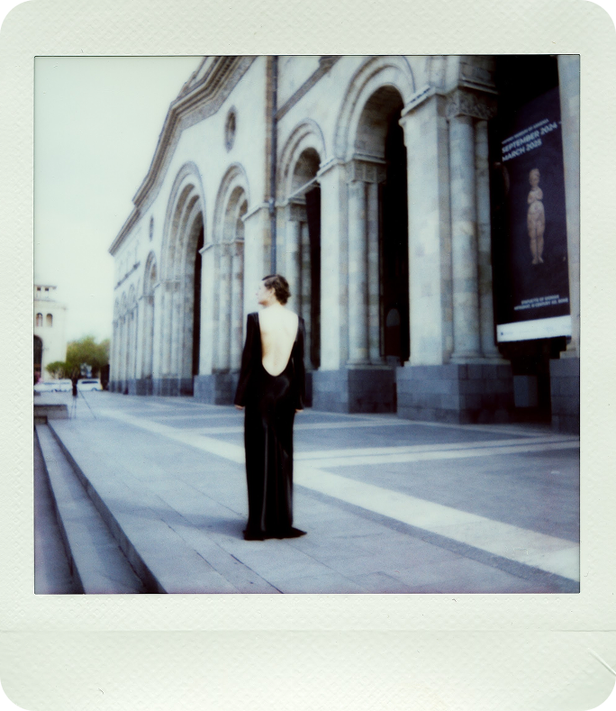 Photographer: Aspo Manukian Videographer: Daniil Strelnikov Dress: Moment of White | Alena Konnova Silk Scarf "Anahit": Artuyt | Created by artist Christine Mkrtchyan in collaboration with the British Museum and the History Museum of Armenia. Accessories: Maison Marashlyan Art Director and Design: Yana Alikina PR and Communications: Germaniqa Project Author: Alex Mirzoyan